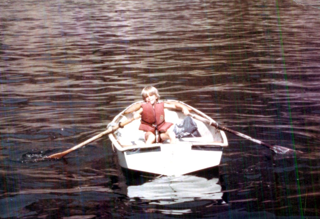 We are on the “hobbycat”. It’s a sailboat. My dad always seems mad at the hobbycat. Sometimes my dad gets mad when we drive the car too, but not like the hobbycat. It runs on the water and it’s blue and I like it because my sister is not allowed and it goes really fast. I don’t know where my sister is.