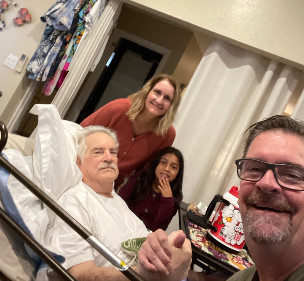 Two or three days before he died, mostly unconscious, Mindy and I were watching him for the night. sleeping over at his place.