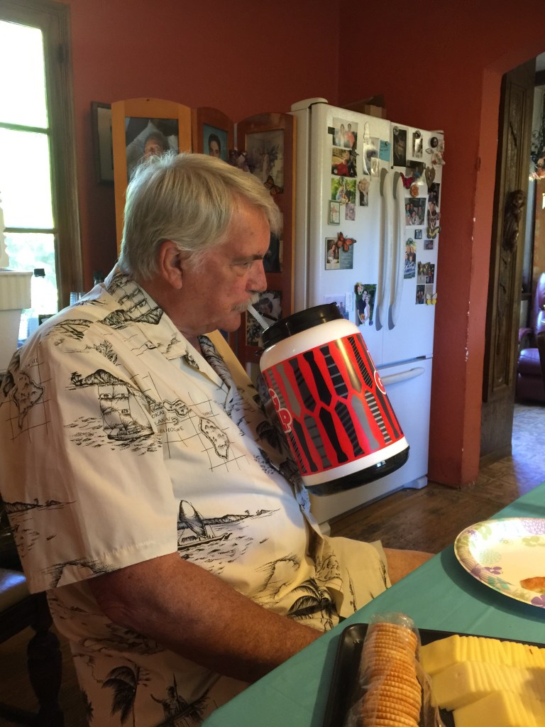 Dad taps me, pantomimes, “watch this…!” then reaches out to grab it.