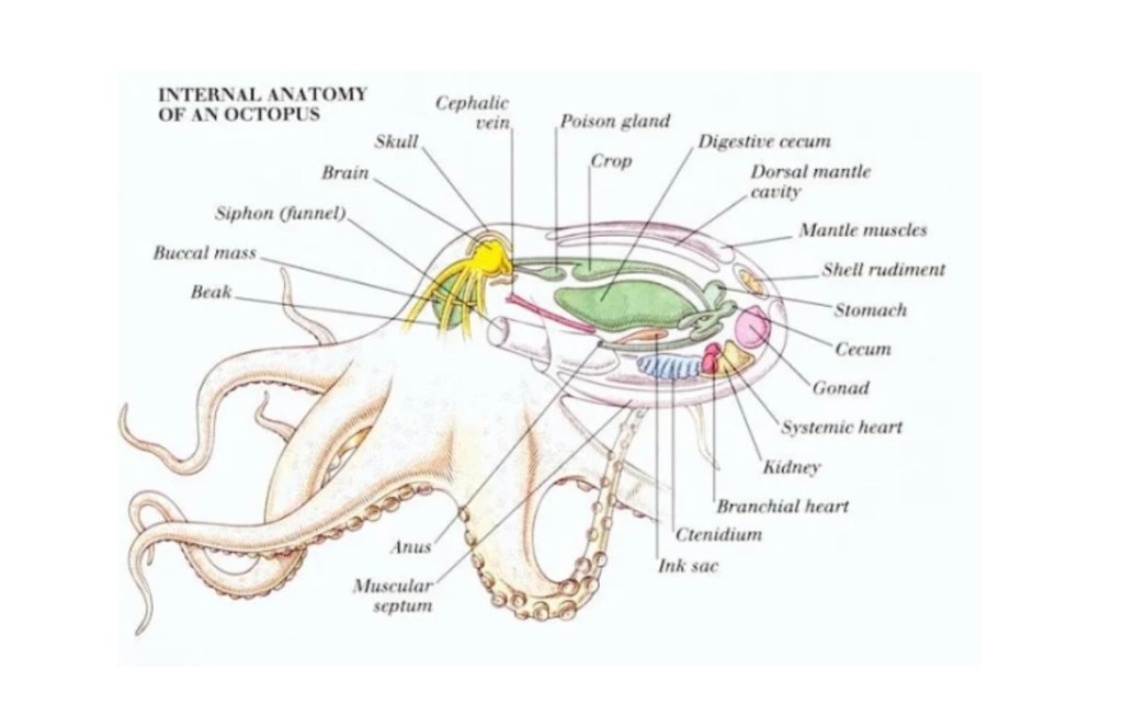 Perturbed, the octopus emits a couple clouds of ink, swims a few feet away, settles down and resumes its octopus chores.